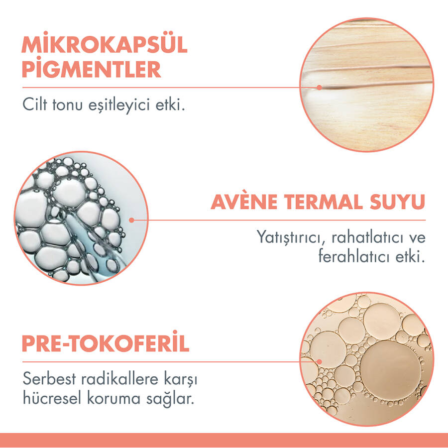 Detaylı Ürün İçeriğiAvène Termal Su, Tinosorb M, Tinosorb S, Parsol 1789, Uvasorb HEB, Pre-tokoferil, Mikro Kapsül Pigmentler.