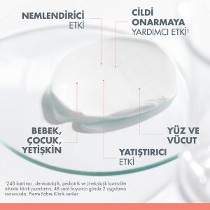 Cildi nazikçe yatıştırırken, cildin nem ihtiyacını karşılamaya ve sağlıklı görünümün korunmasına yardımcı olur. Krem dokusu ile kolayca cilde uygulanır ve koruyucu tabaka oluşturarak cildin doğal bariyerini korur.