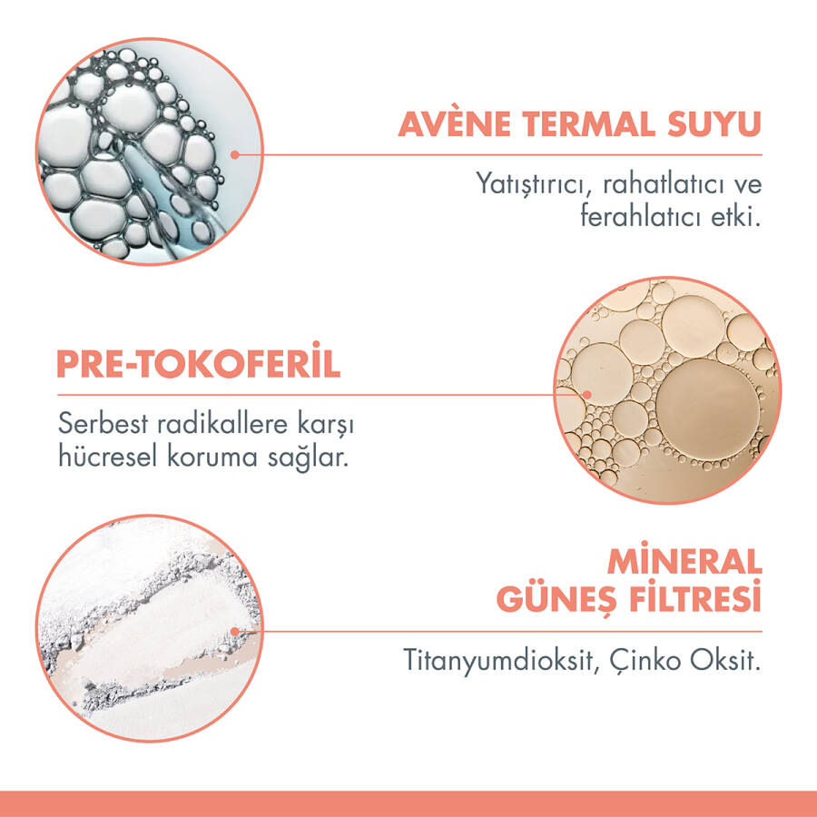 Renkli dokusu ile güneşe karşı koruma sağlarken cilt tonunu eşitleyici bir etki sunar. Kompakt pudra formu ile cilde kolayca uygulanır. İçeriğindeki güçlü formülü ile cilt nemini destekler. İçeriğindeki Avène Termal Su ile cildi yatıştırır ve rahatlatır.