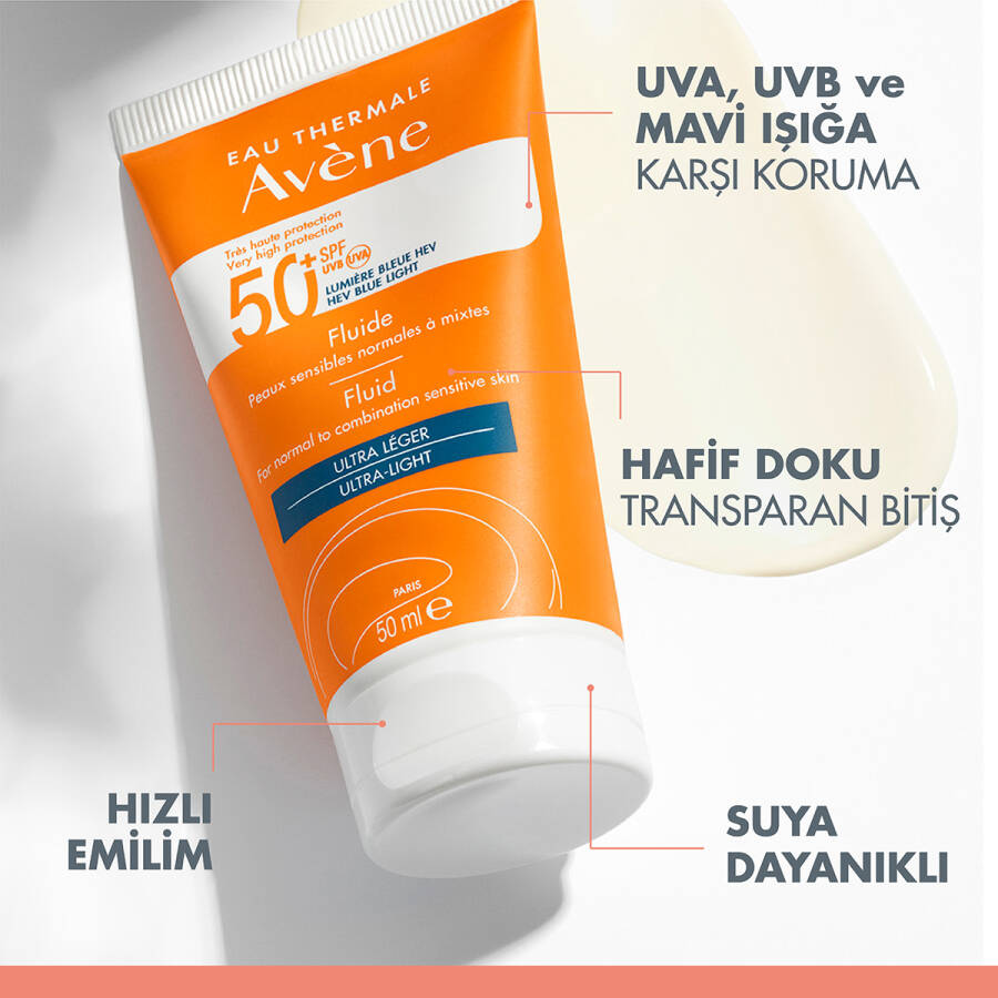 AVÈNE FLUID SPF 50+ NORMAL / KARMA CİLTLER İÇİN GÜNEŞ KORUYUCU (50 ML)