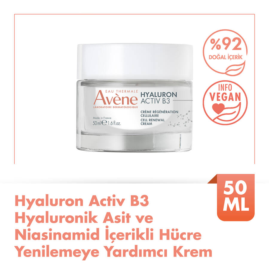 AVÈNE HYALURON ACTIV B3 HYALURONİK ASİT VE NİASİNAMİD İÇERİKLİ HÜCRE YENİLEMEYE YARDIMCI KREM (50 ml)
