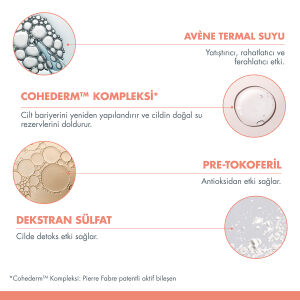 CohedermTM Kompleksi: Cilt bariyerini yeniden yapılandırır ve cildin doğal su rezervlerini doldurur.
