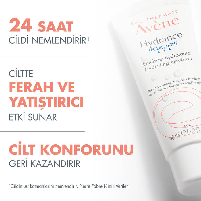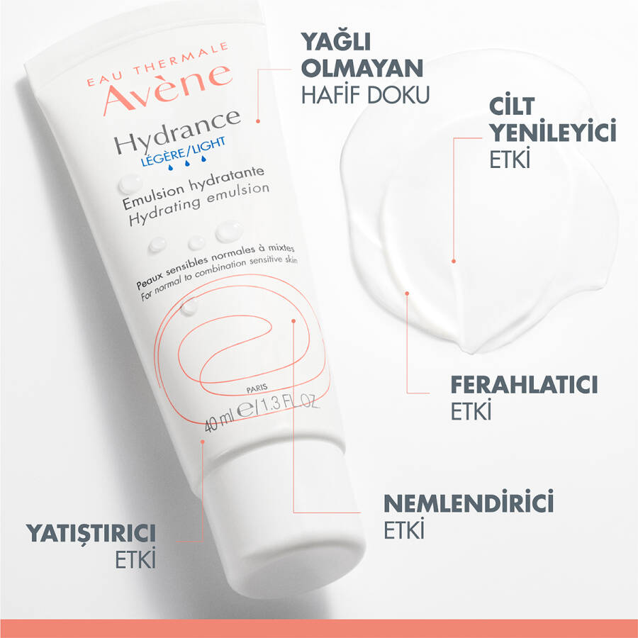 Hydrance Light Nemini Kaybetmiş Normal Ve Karma Hassas Ciltler İçin Nemlendirici Krem, 24 saate kadar cildi nemlendirir.** Avene Termal Su’yu sayesinde uzun süreli rahatlatıcı, ferahlatıcı ve yatıştırıcı etki sağlar. Yağlı olmayan hafif yapısı sayesinde uygulama sonrası cildi ferahlamış, yumuşak ve aydınlık bırakır.