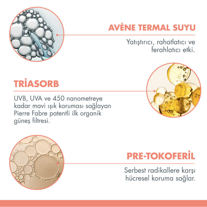 İçeriğindeki TriaSorb** filtresi ile güneşten gelen UVB, UVA ve mavi ışınlara karşı koruma sağlayan Pierre Fabre patentli organik filtredir.