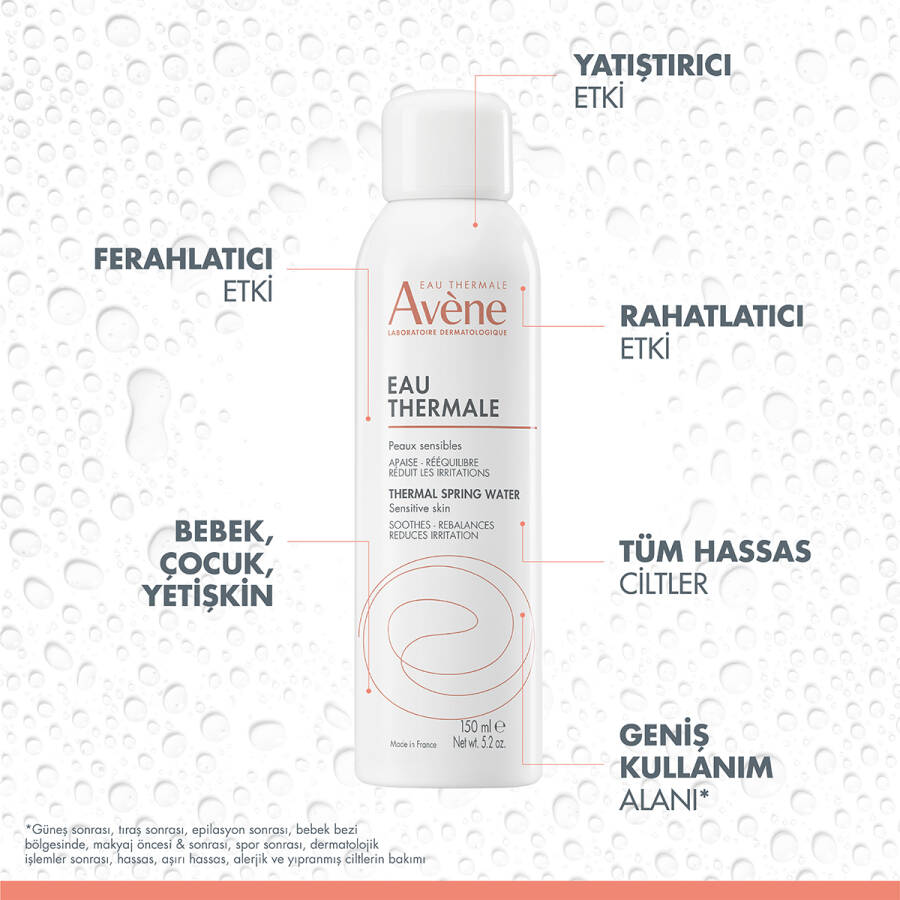 Avène Yatıştırıcı, Rahatlatıcı ve Ferahlatıcı Termal Su, mineraller açısından zengin olup, cildinizi rahatlatır, yatıştırır ve tazeler. Hassas cilt bakımı için uygundur.
