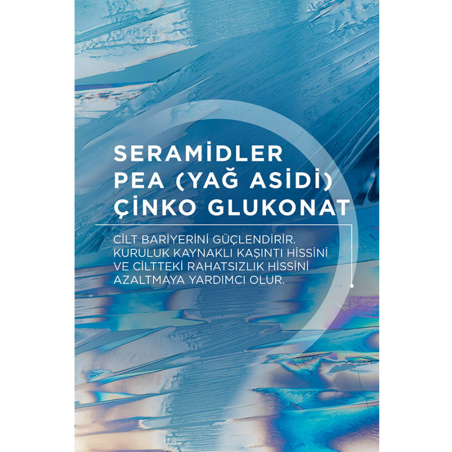 Patentli Skin Barrier Therapy™ kompleksi sayesinde yoğun kuruluğa sebep olan dış etkenlerin ciltte tutunmasını önlemeye yardımcı olarak ciltte meydana gelen rahatsızlık hissine karşı etkili bakım sunar.