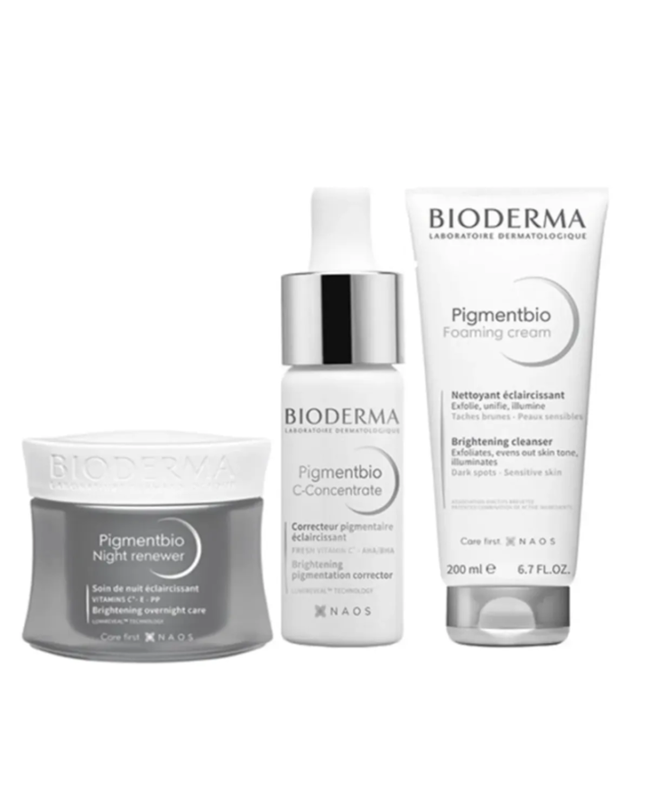 Bioderma Pigmentbio Night Renewer 50 ml: AQUA/WATER/EAU, GLYCERIN, PROPANEDIOL, SQUALANE, ASCORBYL GLUCOSIDE, DIPROPYLENE GLYCOOL, NIACINAMIDE, BUTYLENE GLYCOL, POLYMETHYLSILSESQUIOXANE, HDI/TRIMETHYLOL HEXYLLACTONE CROSSPOLYMER, CARBOMER, SODIUM HYDROXIDE, PENTYLENE GLYCOL, TOCOPHERYL ACETATE, C14-22 ALCOHOLS, 1,2-HEXANEDIOL, CAPRRYLYL GLYCOL, AMMONIUM ACRYLOYDIMETHYLTAURATE/VP COPOYLMER, SALICYLIC ACID, SODIUM CITRATE, LYSINE, AZELAIC ACID, C12-20 ALKYL GLUCOSIDE, DISODIUM PHOSPHATE, MANNITOL, XYLITOL, ANDROGRAPHIS PANICULATA LEAF EXTRACT, RHAMNOSE, SODIUM METABISULFITE, POTASSIUM PHOSPHATE, SACCHARIDE ISOMERATE, BIOSACCHARIDE GUM-1, GLYCRRHIZA GLABRA (LICORICE) ROOT EXTRACT, GLYCERYL CAPRYLATE, SODIUM ANISATE, SODIUM LEVUNATE, FRUCTOOLIGOSACCHARIDES, CAPRYLIC/CAPRIC TRIGLYCERIDE, HEXAPEPTIDE-2 LAMINARIA OCHROLEUCA EXTRACT, FRAGNANCE (PARFUM). [BI 748].