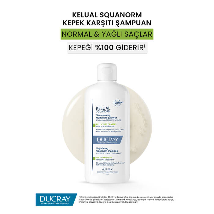 Ducray Kelual Squanorm Normal ve Yağlı Saçlar İçin Kepek Karşıtı Şampuan 400 ml