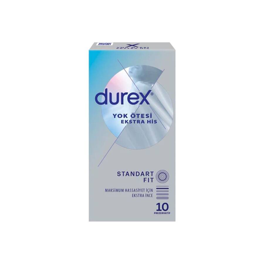 Maksimum his için ekstra ince yapıya sahiptir. Rezervuar ucu pürüzsüz biçimde uyum sağlar. 54 mm nominal çapı sahiptir. Tek seferde doğru takmak için folyo üzerinde bulunan Durex logosu size prezervatifin alt kısmını gösterir.
