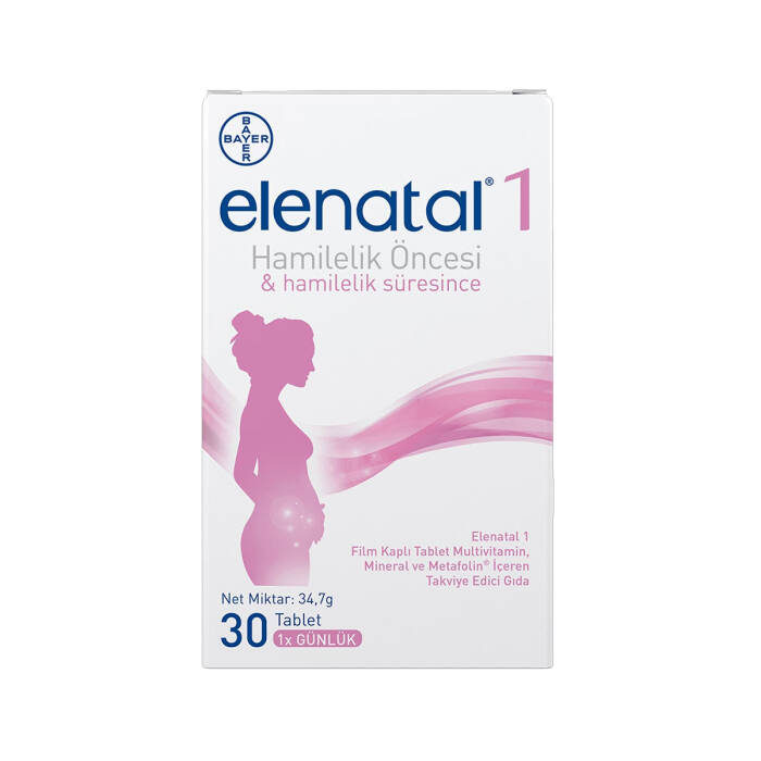 Elenatal 1, hamilelik öncesi ve hamilelik döneminde anne adayları için hazırlanmış takviye edici bir gıdadır. 12 vitamin ve 8 mineal içeren günlük ihtiyaçlara karşılamaya yönelik sunulan bir multivitamindir. İçeriğinde bulunan; Takviye folik asit alımı, anne adayının folat düzeyini artırır. Düşük folat düzeyi, fetüsün gelişiminde nöral tüp kusurları için bir risk faktörüdür. B1, B2, B3, B5, B6, B12, Folik Asit, C vitaminleri ile demir, iyot mineralleri normal enerji oluşum metabolizmasına katkıda bulunur. B6, B12, D ve C vitaminleri ile çinko ve demir mineralleri bağışıklık sisteminin normal fonksiyonuna yardımcı olur. B6, B12 vitaminleri ve demir kırmızı kan hücrelerinin oluşumunda rol oynar. A vitamini normal demir metabolizmasına, bağışıklık sisteminin normal fonksiyonuna ve hücre özelleşmesine katkıda bulunur.