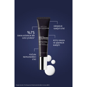 Hyaluronik asit içeriğiyle göz çevresi için nemlendirici etki sunarak göz altının daha dolgun görünmesine ve göz çevresindeki kırışıklık görünümünün azalmasına yardımcı olur.