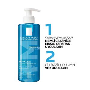 Cildi kirden ve sebumdan arındırır. Ciltteki kiri ve kalıntıları nazikçe temizler. Gözenekleri temizler ve cilde tazelik hissi verir. Cildin temiz ve yenilenmiş kalmasını sağlar. La Roche-Posay termal su içerir. Cilt ile uyumlu pH'a sahiptir. Alkol içermez. Komedojenik değildir Hassas ciltlere uygundur.