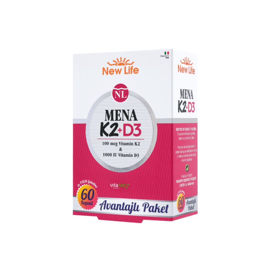 Mena K2 + D3 içerisinde bulunan Menakinon - 7 yani K2 vitamininin doğal formudur. Mena K2 + D3 içerisinde bulunan doğal K2 vitamini geleneksel bir Japon yiyeceği olan Natto’ dan elde edilmektedir. Mena K2 + D3 içerisinde aynı zamanda D3 vitamini de bulunmaktadır. D ve K vitamini normal kemiklerin korunmasına katkıda bulunur. D vitamini kalsiyumun ve fosforun normal emilimine kullanımına katkıda bulunur. New Life Mena K2 + D3 Türkiye’de piyasaya çıkan ilk K2 vitaminidir. K2 vitamini yağda çözünen bir vitamindir ve vücuda alındığında emiliminin gerçekleşebilmesi için yağlı bir ortam gerekmektedir. Mena K2 + D3 İçeriğindeki zeytinyağı sayesinde yüksek emilim gösterir. New Life Mena K2 + D3, doğal K2 vitamininden zengin Natto’nun üretimi için gerekli olan tek bakteri olan Bacillus Subtilis bakterilerinin patentli biyofermantasyon yöntemi ile elde edilmektedir. Balık jelatini kapsüller sindirim sistemine uyumludur, kötü koku ve tada yol açmaz. Bu özelliği sayesinde Mena K2 + D3 rahat bir kullanım sağlamaktadır. Süperkritik CO2 teknolojisi kullanılarak saflaştırıldığından herhangi bir kimyasal çözücü, koruyucu katkı maddesi veya sentetik işlem içermez. Mena K2 + D3 kapsülleri hijyenik tekli paketleme ( blister ) sayesinde kullanım sırasında havayla temas etmez, oksidasyon riski yoktur bu duruma bağlı oluşabilecek tat ve kokuda bozukluk ve kapsüllerin yapışması gibi sorunlar görülmez.