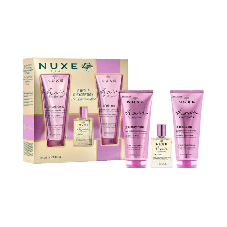 Nuxe Hair Prodigieux High Shine Conditioner 200 ml.: AQUA/WATER, BEHENAMIDOPROPYL DIMETHYLAMINE, STEARYL ALCOHOL, CETYL ALCOHOL, PARFUM/FRAGRANCE, CAMELLIA JAPONICA SEED OIL, HYDROXYPROPYL STARCH PHOSPHATE, CITRIC ACID, PANTHENOL, FRUCTOOLIGOSACCHARIDES, BEHENYL/STEARYL AMINOPROPANEDIOL ESTERS, BENZOIC ACID, CARAMEL, INULIN, CANDIDA BOMBICOLA/GLUCOSE/METHYL RAPESEEDATE FERMENT, PANTOLACTONE, LINALOOL, CITRONELLOL, LIMONENE, GERANIOL [N5403/A].
