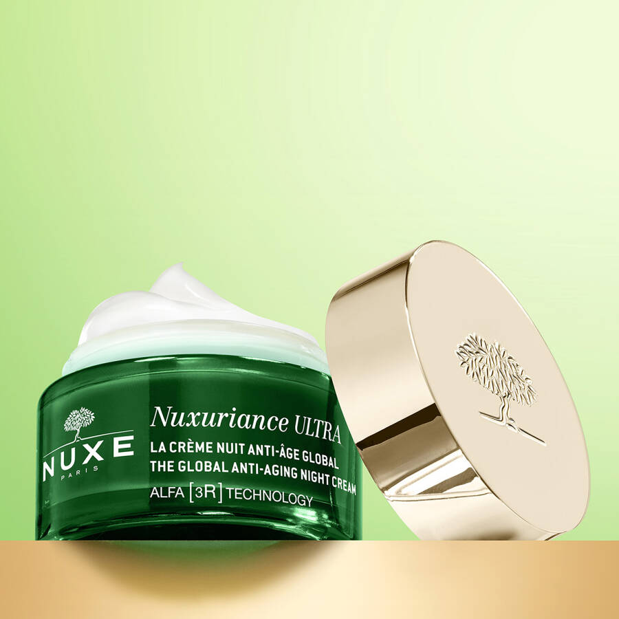 Nuxe Nuxuriance Ultra Yaşlanma Karşıtı Gece Kremi, cildin doğal parlaklığını arttırarak dinlenmiş bir görünüm oluşturur.