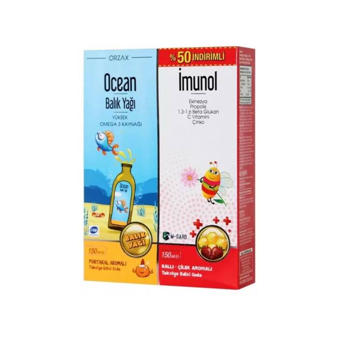 Orzax Ocean Portakal Aromalı Balık Yağı Şurubu 150 ml + Orzax İmunol Şurup 150 ml