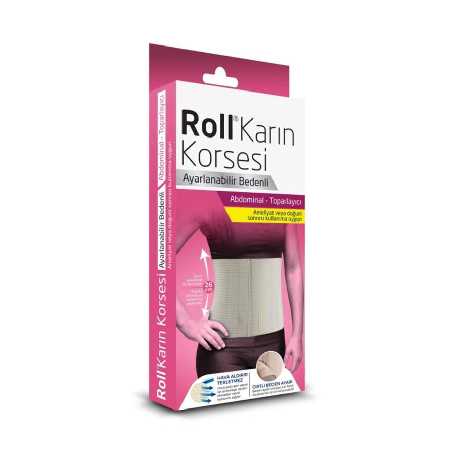 Roll karın korsesi, ameliyat veya doğum sonrasında oluşan karın sarkmaları için destekleyici ve toparlayıcı olarak kullanılır. Hafif ve sağlamdır. Hava geçirgen yapısı ile terlemeye neden olmadan rahat kullanım sağlar. 26 cm yüksekliği ile beli sarar. Kıyafet altında kullanıma uygundur. Beden ayarlı olduğu için farklı ölçülere tek ürün kullanılabilir. Kullanmadan önce doktorunuza danışınız.