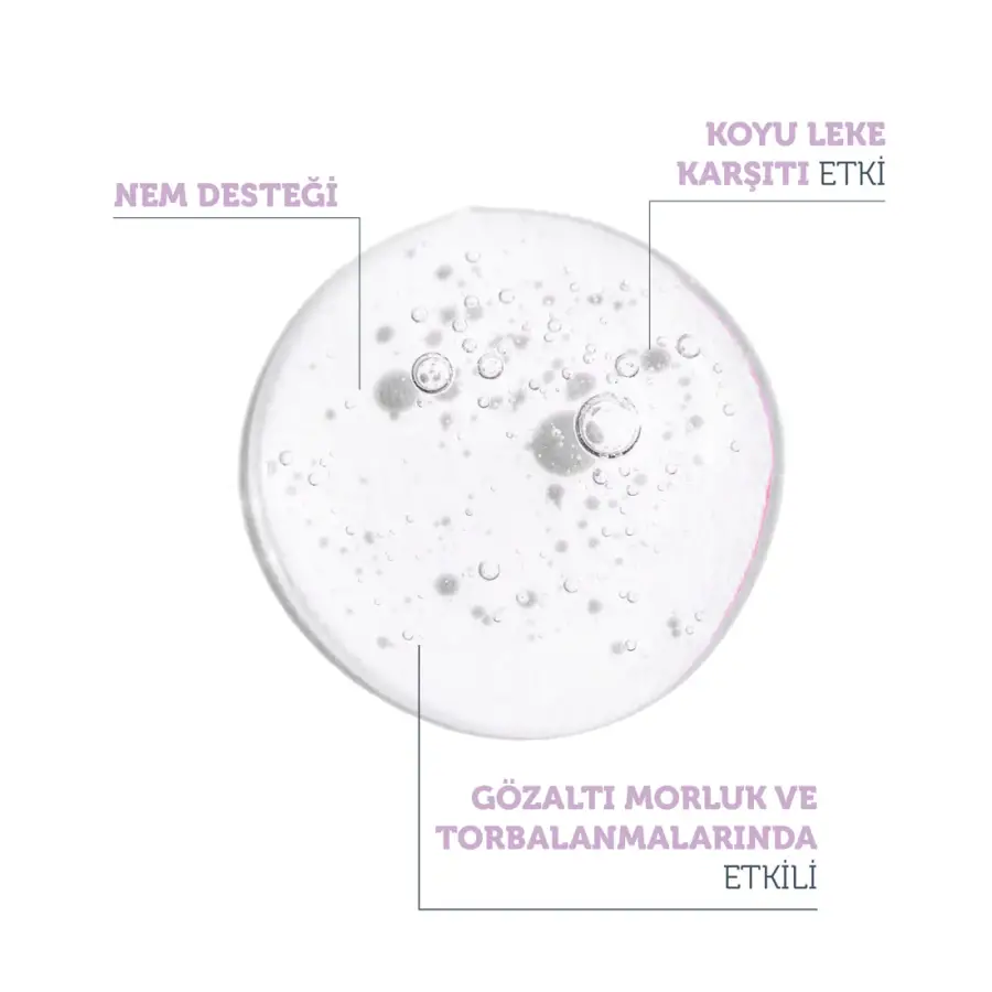 Detaylı Ürün İçeriğiKafein: Mikrosirkülasyonu uyararak göz altı torbalanmalarında ve göz altı ton farklılıklarında azaltıcı etki gösterir.