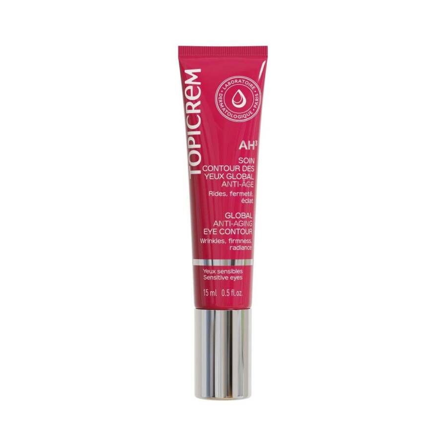Topicrem AH3 Global Yaşlanma Karşıtı Göz Çevresi Bakımı, özellikle hassas olan bu bölgeyi nemlendirirken, kırışıklığa, koyu halkalara ve şişliklere karşı bir etki sağlar.