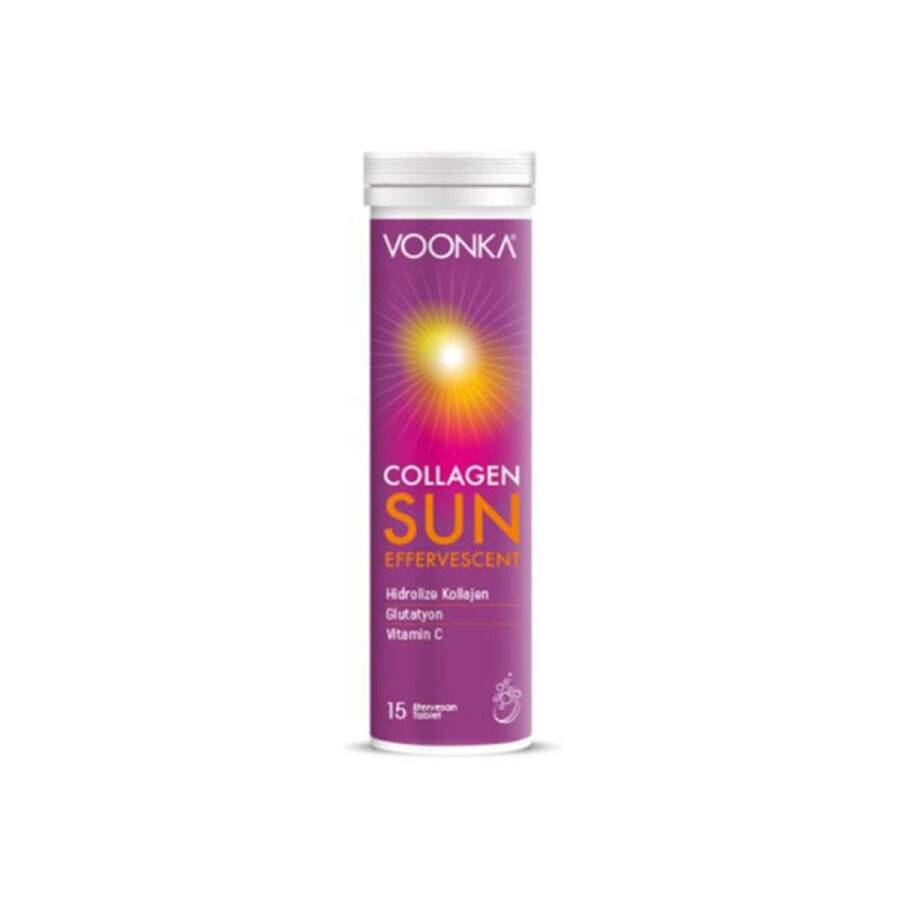 Voonka Collagen Sun Efervesan 15 Tablet, cildinizin kolajen üretimini artırarak yaşlanma belirtilerini azaltmaya ve daha genç görünen bir cilde sahip olmanıza yardımcı olur.