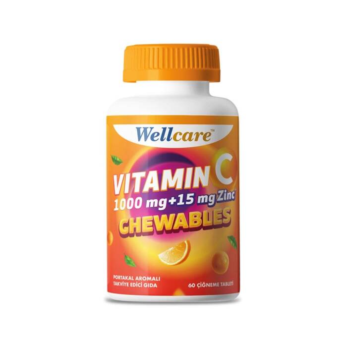 Wellcare Vitamin C 1000 mg + 15 mg Çinko 60 Çiğneme Tableti