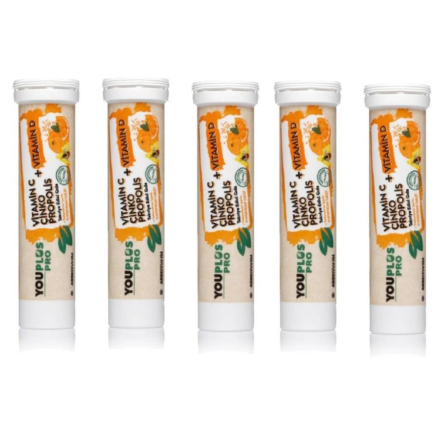 Youplus Pro Vitamin C Çinko Propolis Takviye Edici Gıda 15 Efervesan Tablet x 5 Adet